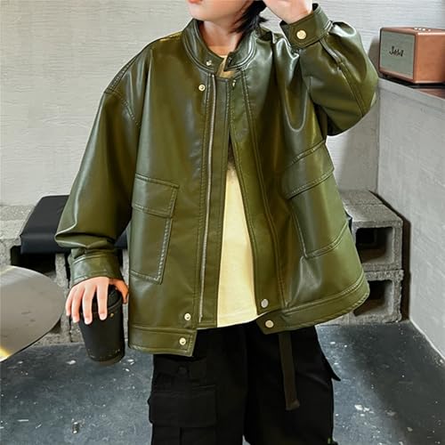 • Boys' faux leather jacket features drop shoulder design and stand-up collar, perfect for spring and fall seasons