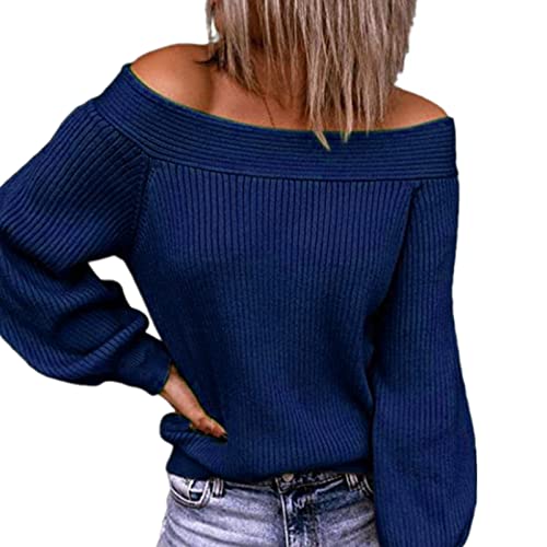 HOT ! ANBID Women's Casual Off-The-Shoulder bat Wing Sweater Long Sleeve Oversized Rib Loose V-Neck Pullover Knitted Pullover