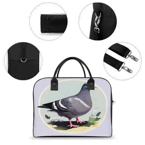 Grey Pigeon Print Laptop Tote Bag Casual Travel Handbag Multi Pocket Shoulder Bags for Work Travel 1