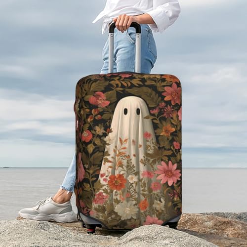 Retro White Ghost Colorful Flowers Elastic Travel Luggage Covers Dustproof Scratch-Resistant Suitcase Protector Fit 22-24 Inch 1