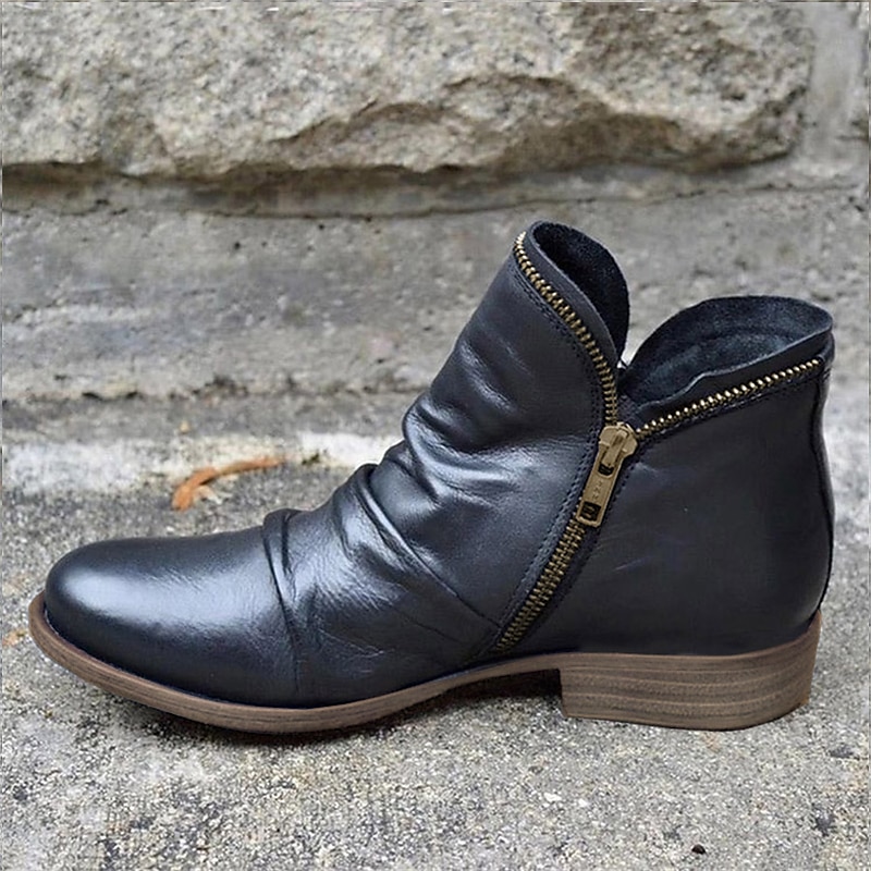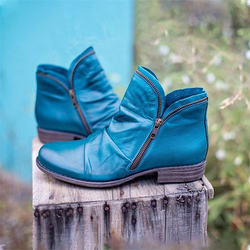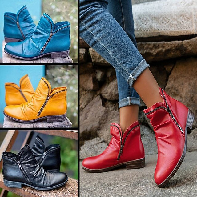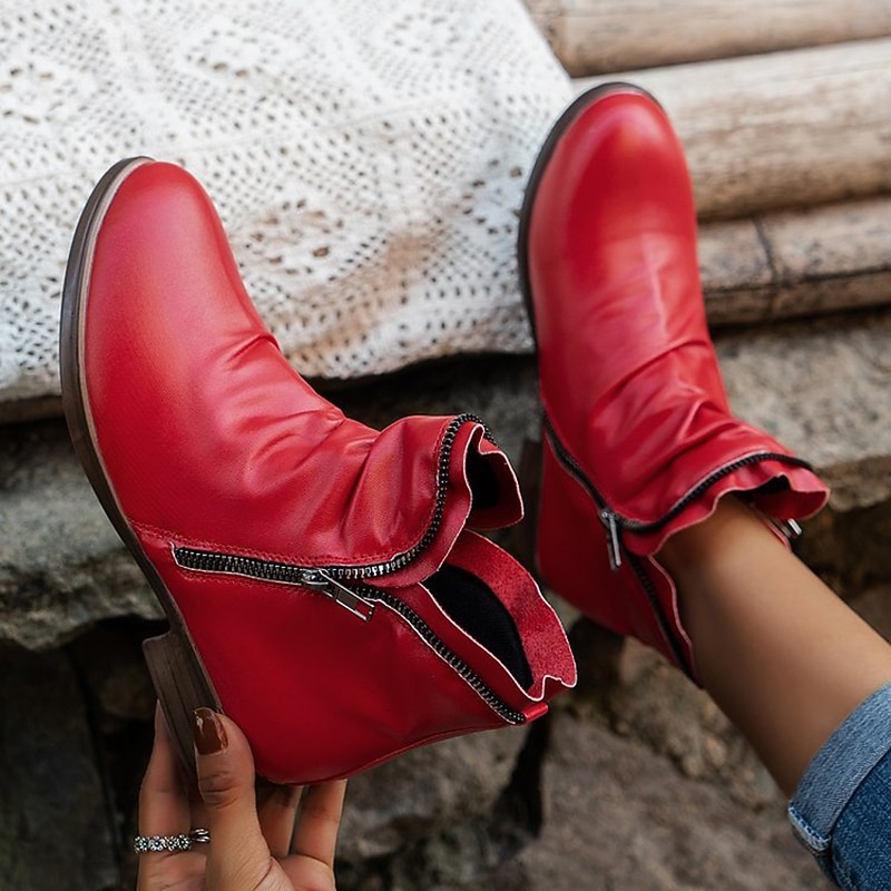 Women's Stylish Red Ankle Boots - Casual Zip-Up Faux Leather Booties for Everyday Wear 17