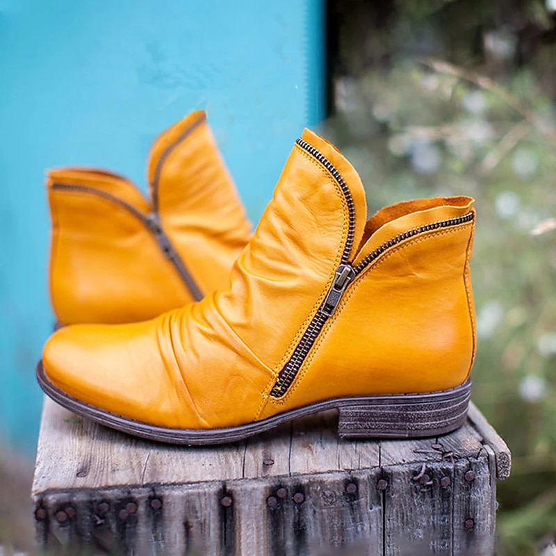 HOT ! Women's Stylish Red Ankle Boots - Casual Zip-Up Faux Leather Booties for Everyday Wear