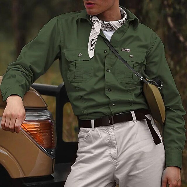 More information about Men's Shirt Button Up Shirt Work Shirt Cargo Shirt Black White khaki Army Green Long Sleeve Plain Lapel Hawaiian Vacation Pocket Clothing Apparel Fashion Casual Comfortable