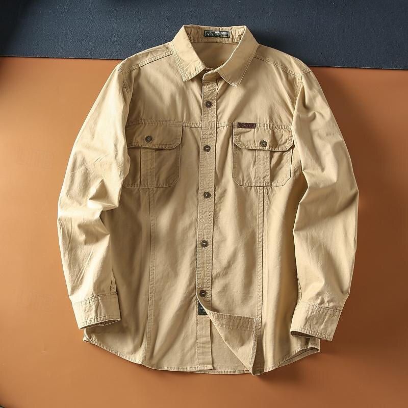 Men's Shirt Button Up Shirt Work Shirt Cargo Shirt Black White khaki Army Green Long Sleeve Plain Lapel Hawaiian Vacation Pocket Clothing Apparel Fashion Casual Comfortable