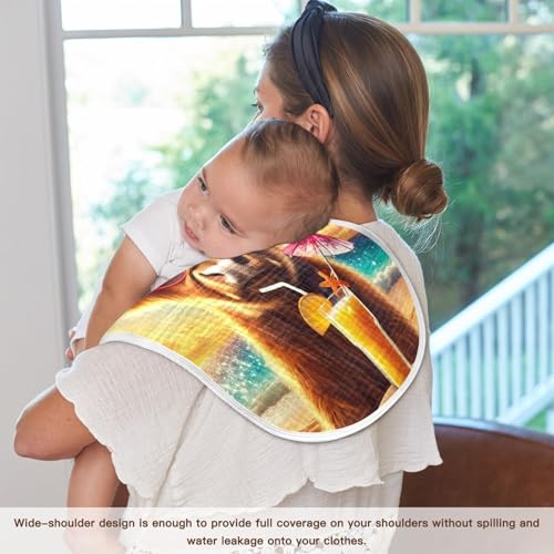 Highland Cow Summer Beach Baby Burp Cloths Absorbent Muslin Soft Burp Cloth Rags Cotton Burp Clothes for Girl Unisex Boy Newborn 1 Pack 22x11 Inches 5