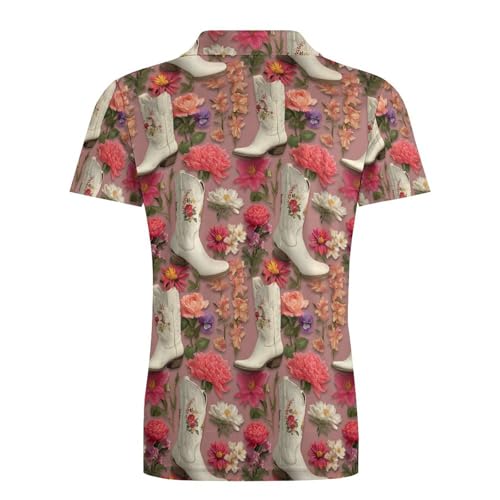 Boys' Classic Polo Shirts Short Sleeve Moisture-Wicking Golf & Tennis Shirts for Youth Teens Western Cowboy Boots Flowers 4