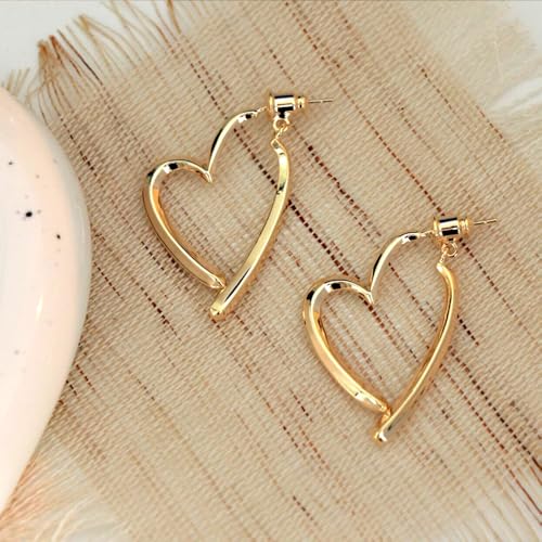 More information about Gold Heart Asymmetrical Earrings for Women Large Heart Shaped Hoop Dangle Earrings Minimalist 80s Love Front Back Earrings Chrome Hearts Jewelry Gifts