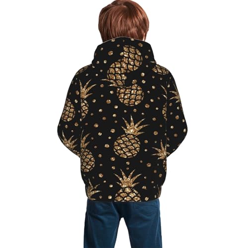 Gold Glitter Pineapples Kids Pullover Hoodies Boys Sweatshirts Girls Athletic Clothes with Pocket 7