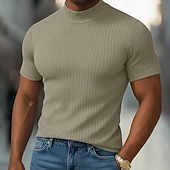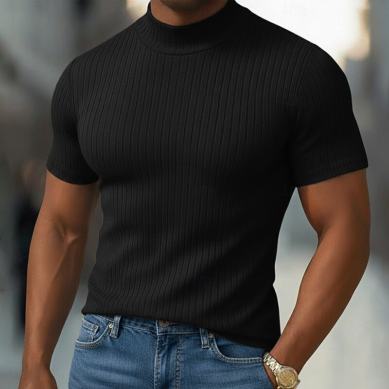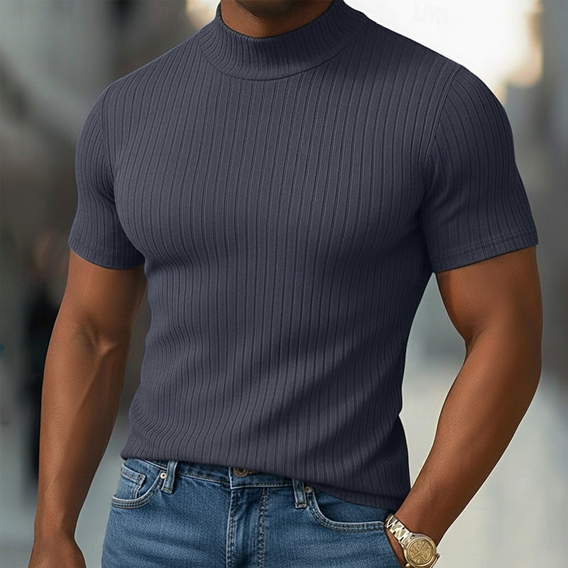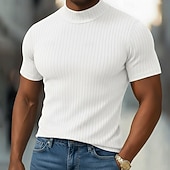 More information about Men's T Shirt Muscle Shirt Ribbed Knit tee Tee Top Short Sleeves Turtleneck Summer Plain Pit Strip Fashion Designer Basic Slim Fit Vacation Street Going out Black White Light Gray Top Tee for Men