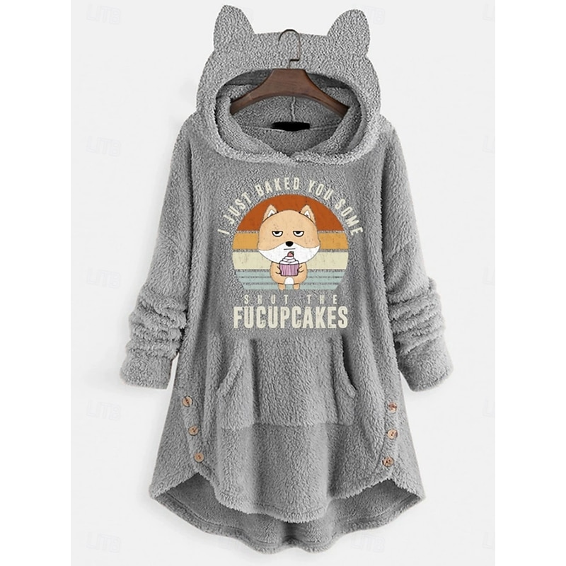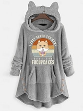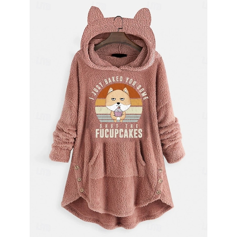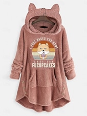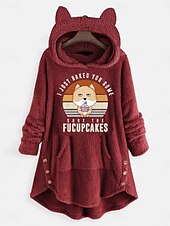 More information about Women's Pullover Hoodie Sweatshirt Cat Letter Casual Long Sleeve Hooded Crop Tops Street Dailywear Casual Light Pink Pink Wine Red Dark Gray Fall Winter
