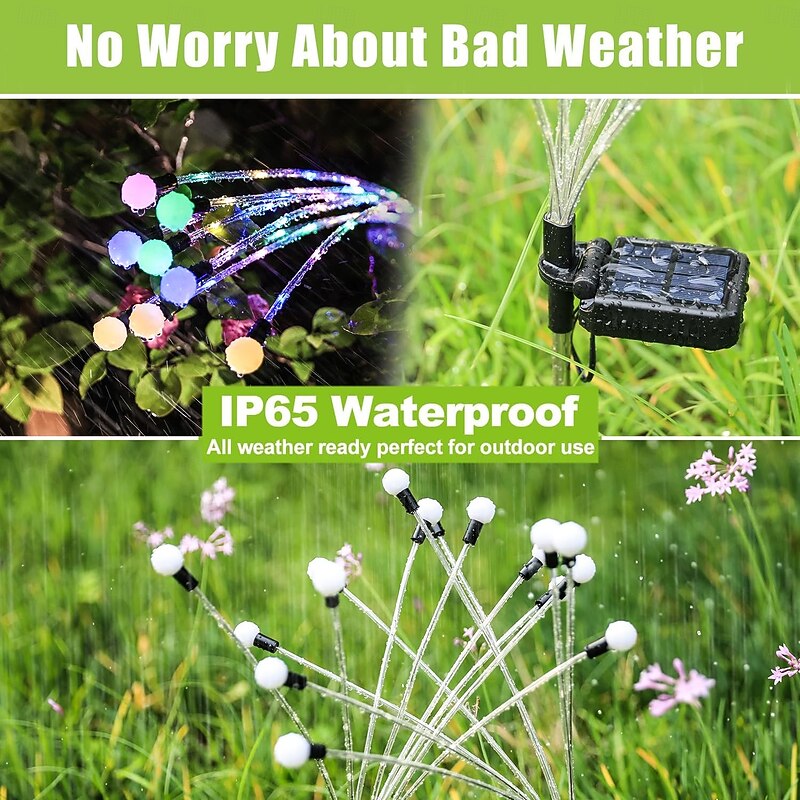 2 Pcs LED Outdoor Solar Lights Firefly Lights Ground Insertion Patio Lights Pole Glowing Courtyard Garden Path Lawn Wedding Festival Party Atmosphere 9