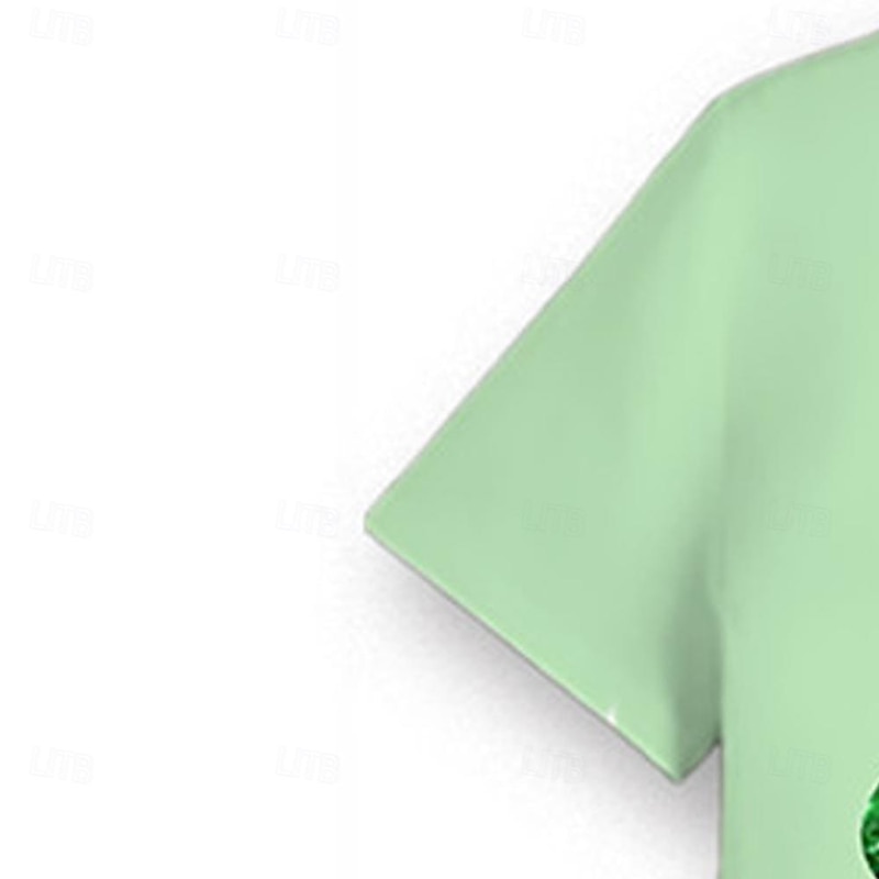St. Patrick Girls' 3D Four Leaf Clover Tee & Pants Pajama Sets Short Sleeve 3D Print Summer Spring Fall Active Fashion Cute Polyester Kids 4 years+ Crew Neck Home Causal Indoor Regular Fit 1