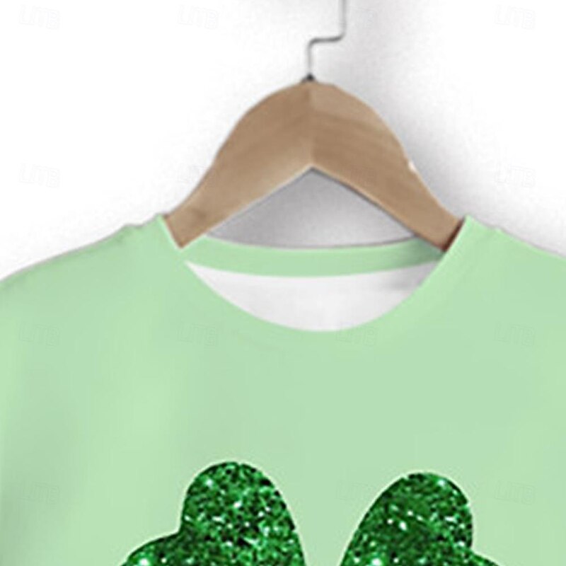 St. Patrick Girls' 3D Four Leaf Clover Tee & Pants Pajama Sets Short Sleeve 3D Print Summer Spring Fall Active Fashion Cute Polyester Kids 4 years+ Crew Neck Home Causal Indoor Regular Fit 6