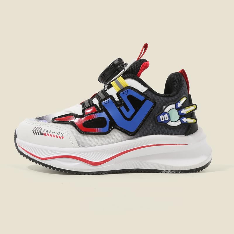 HOT ! Kids Fashion Sneakers with Dial Closure, Athletic Running Shoes, White/Red/Blue, Chunky Platform Design