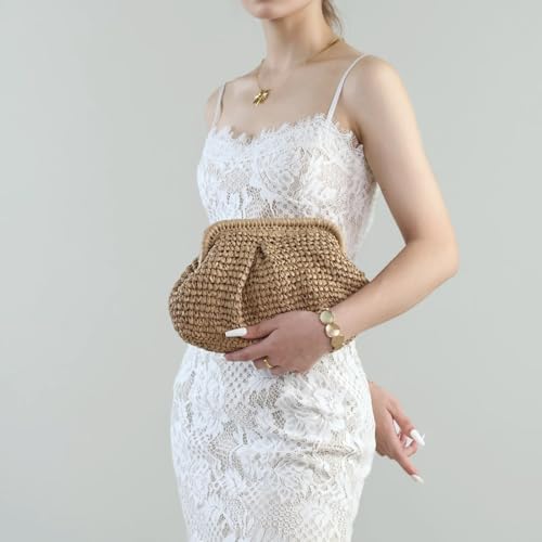• Boho-Chic & Versatile Design:This straw clutch purse for women features a handwoven raffia texture, perfect for beach vacations, weddings, or evening parties. The compact yet spacious design fits phones, lipstick, and cards, while the detachable crossbody strap offers hands-free convenience.