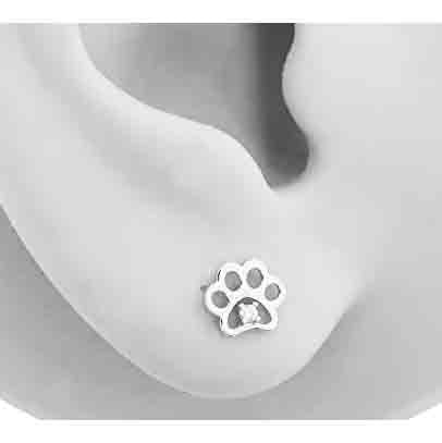 14kt Real Gold Paw Stud Earring Animal Dog-Paw, Real White Gold Studs (White Gold) 7