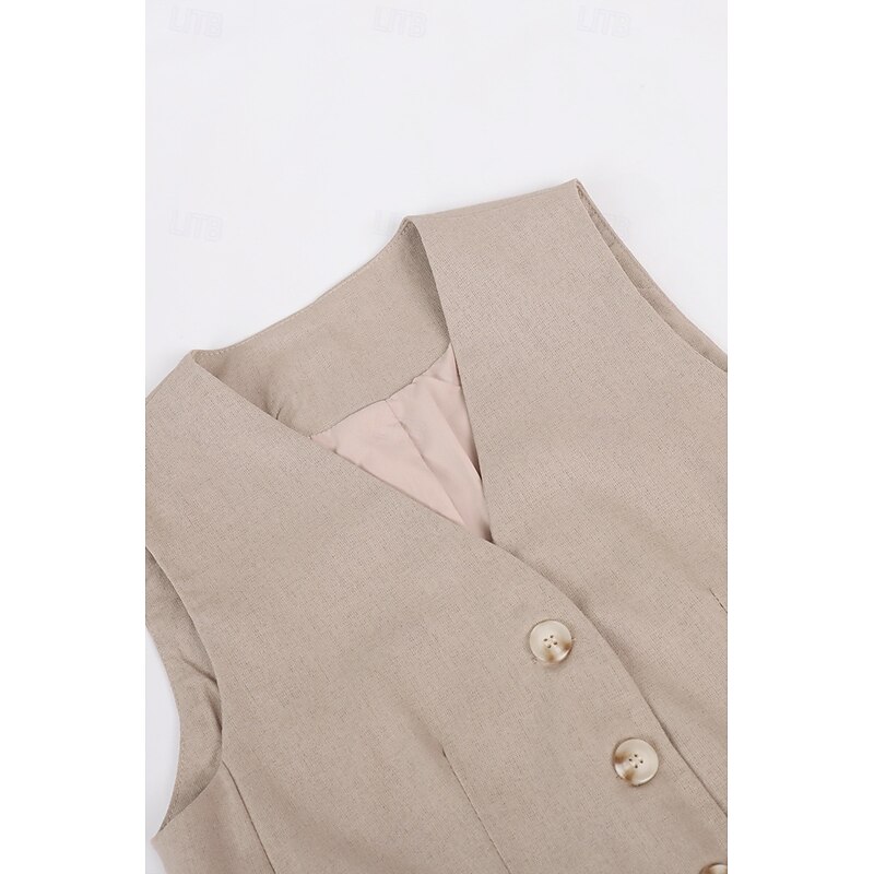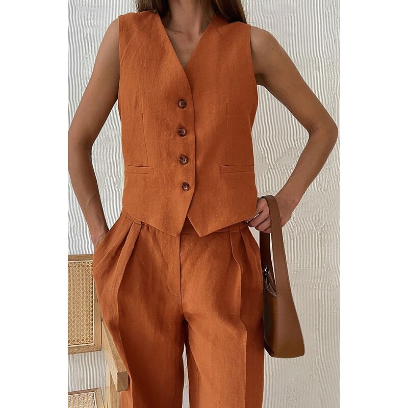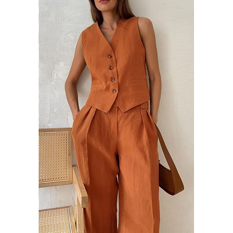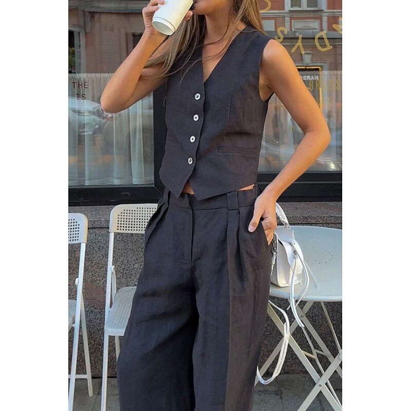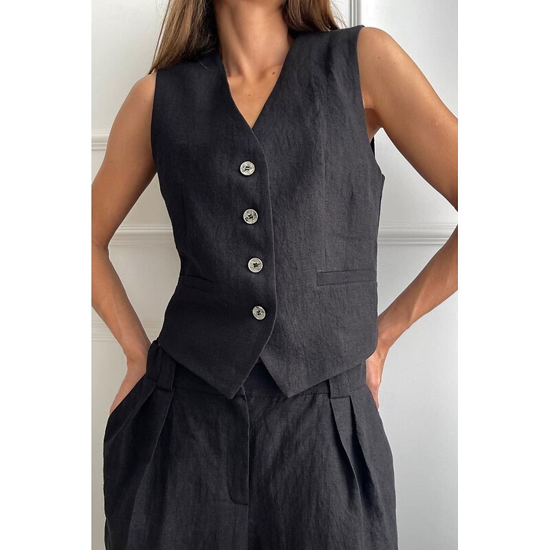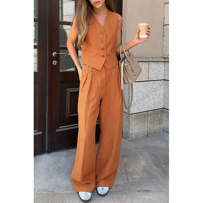 More information about Women's Active Fashion Blouse Pants Sets Sleeveless V Neck Solid Color Dubbele Rij Knopen Vacation Casual Daily Black Orange Khaki Summer Regular Fit