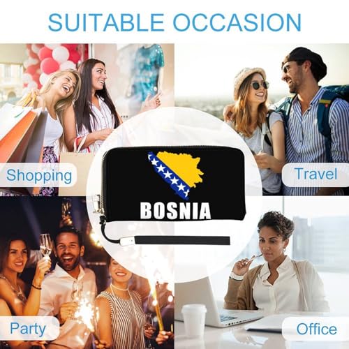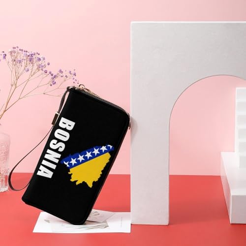 Bosnia And Herzegovina Map Flag Clutch Wallet Wristlet Long Handbag PU Leather with Card Slots Cash Coin Pocket for Women Men 7