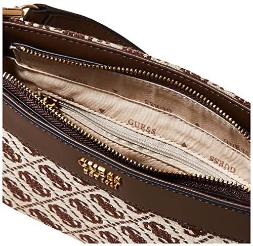 Why Choose GUESS Women's Katey Handbag Brown Logo Jacquard Mini Top-Zip Shoulder Bag?
