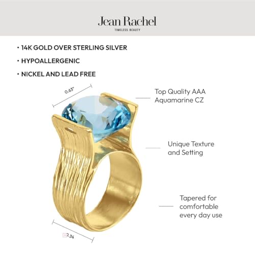 HOT ! JEAN RACHEL JEWELRY 14K Gold Plated Sterling Silver Ring with 11.75 TCW Cubic Zirconia - Textured Band Vintage Design - Hypoallergenic, Lead & Nickel Free Jewelry Statement Rings for Women