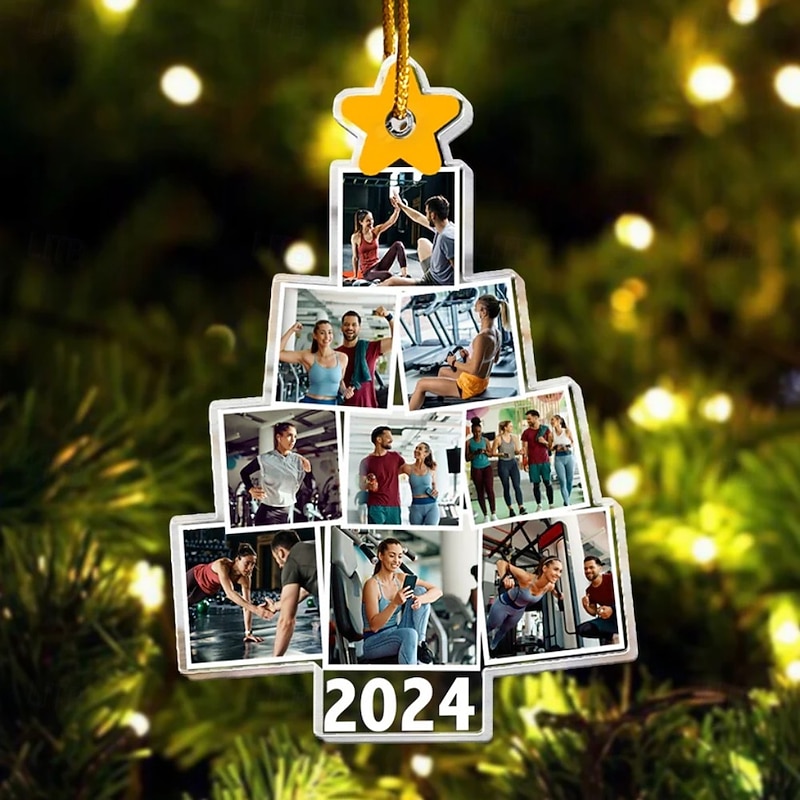 Personalized Christmas Tree Fitness Photo Ornaments Acrylic 2D Custom Picture Frame Decor Christmas Tree Xmas Decoration Hanging Pendant Gifts for Family and Friends