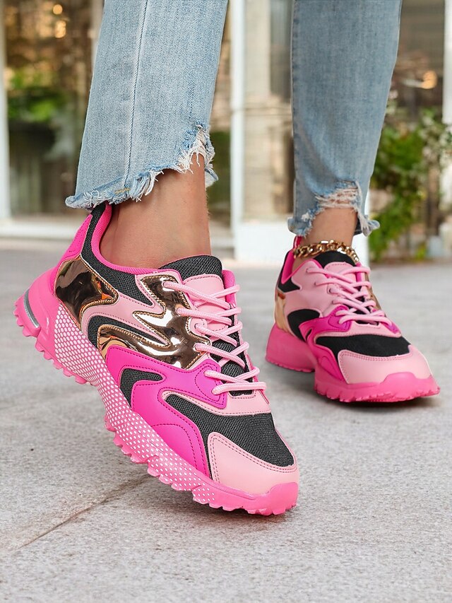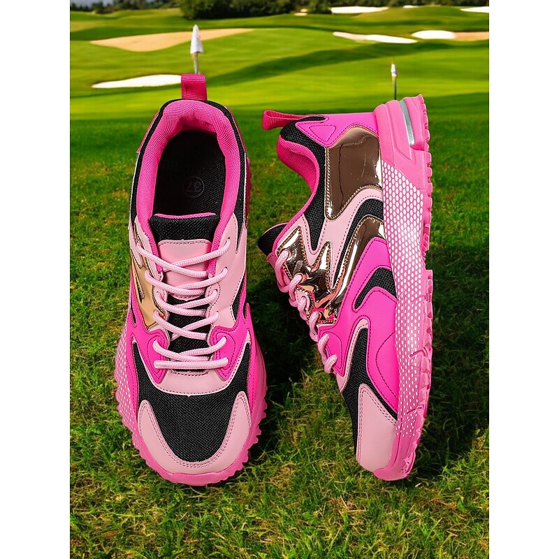 Color Block Sneakers with Metallic Accents and Breathable Mesh, Sporty Style for Women, Perfect for Running, Walking and Casual Outings 1