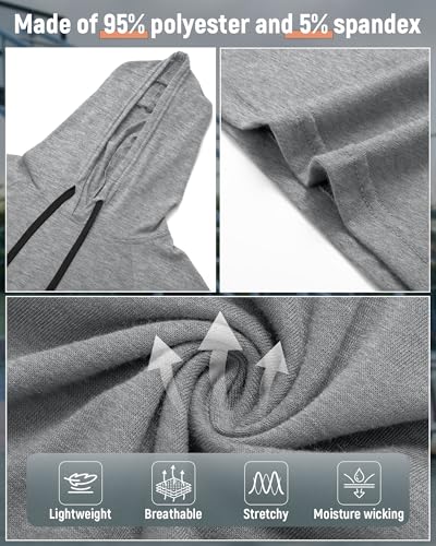 • Comfy Material: the men's workout hoodie is made of 95% polyester and 5% spandex; This fabric combination offers comfort, lightweight, flexibility, and breathability, making it suitable for both indoor and outdoor activities