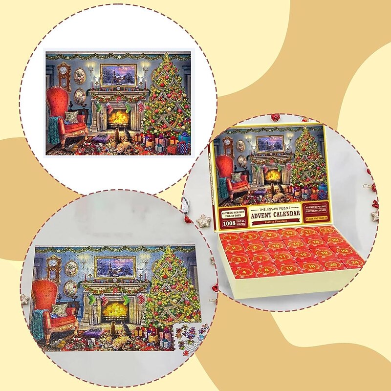 More information about Advent Calendar 2024 Christmas Jigsaw Puzzles Blind Box Christmas by the Fireplace Holiday Puzzles for Adults Kids, 24 Parts 1008 Pieces Jigsaw Puzzles Gift for Countdown to Christmas