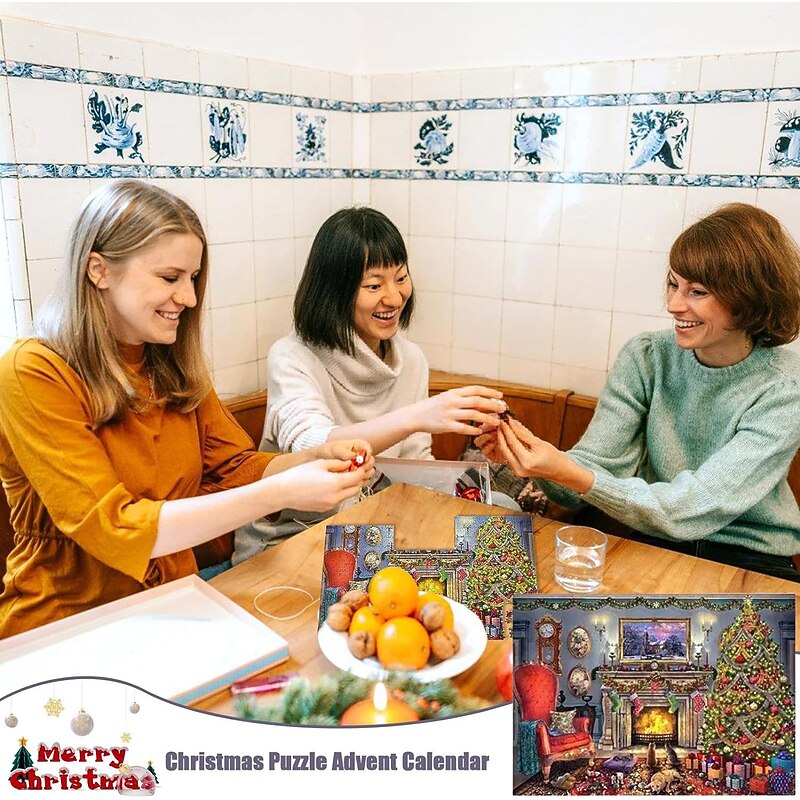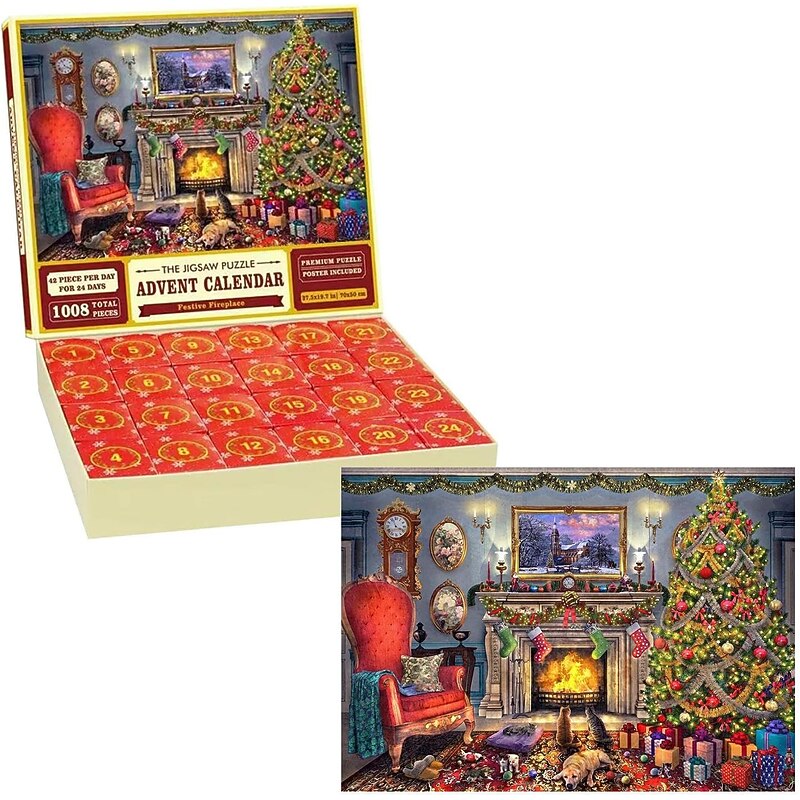 Advent Calendar 2024 Christmas Jigsaw Puzzles Blind Box Christmas by the Fireplace Holiday Puzzles for Adults Kids, 24 Parts 1008 Pieces Jigsaw Puzzles Gift for Countdown to Christmas
