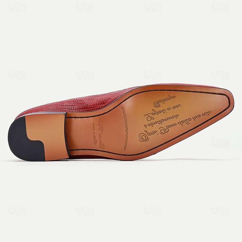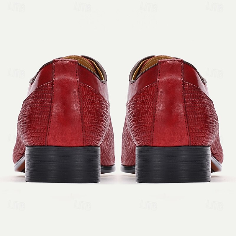 More information about Men's Red Premium Cowhide Oxford Shoes - Classic Lace-Up Formal Leather Dress Shoes with Textured Details for Christmas,Special Occasions