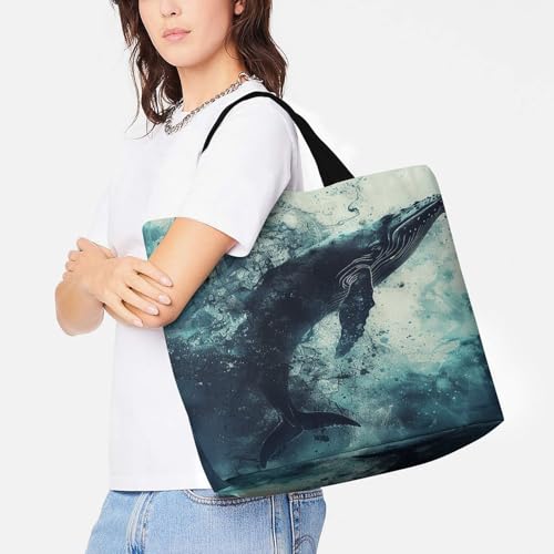 HOT ! Women's Multi-Functional Shopping Bag,Whale in Water Printing Messenger Bag Shoulder Bag for Travel, Work, Shopping & Parties with Inner Pocket, Grocery Bag Lightweight & Water-Resistant