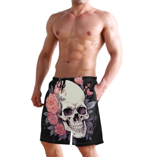 Skull Gothic Pink Flower Mens Swim Trunks Quick Dry Beach Shorts with Pocket S 202a5856 1