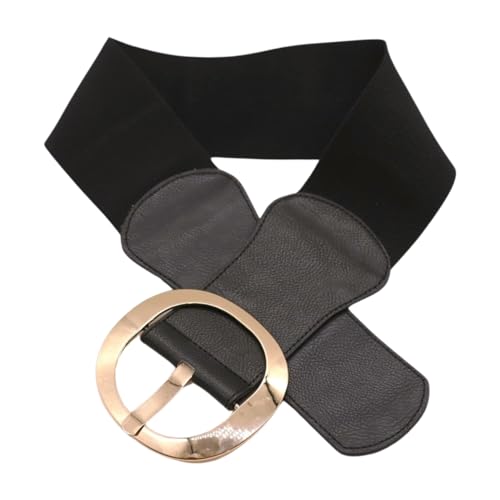 • Color : Gold metal buckle + black faux leather and elastic waistband