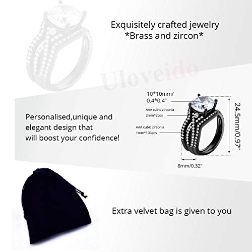 More information about Uloveido Black Plated Big White CZ Infinity Bridal Rings Set 3pcs Stack Wedding Band Infinity Rings for Women Y1130