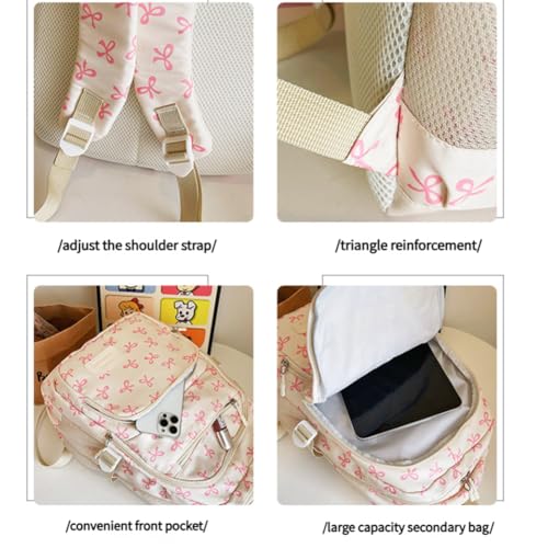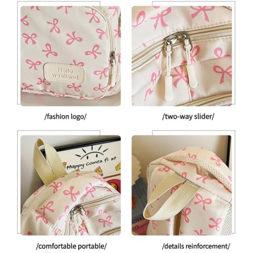 • 【Trendy & Spacious Design】Features a chic bow pattern and multiple compartments, offering ample space for essentials like laptops, books, and water bottles while keeping items organized.