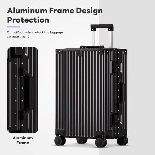 Carry-on with Cup Holder & USB Port Carry on Luggage Durable Luggage Suitcase Lightweight Hardside Luggage with TSA lock & Phone Holder 360° double spinner Wheels (Black=20lnch, 20lnch) 6