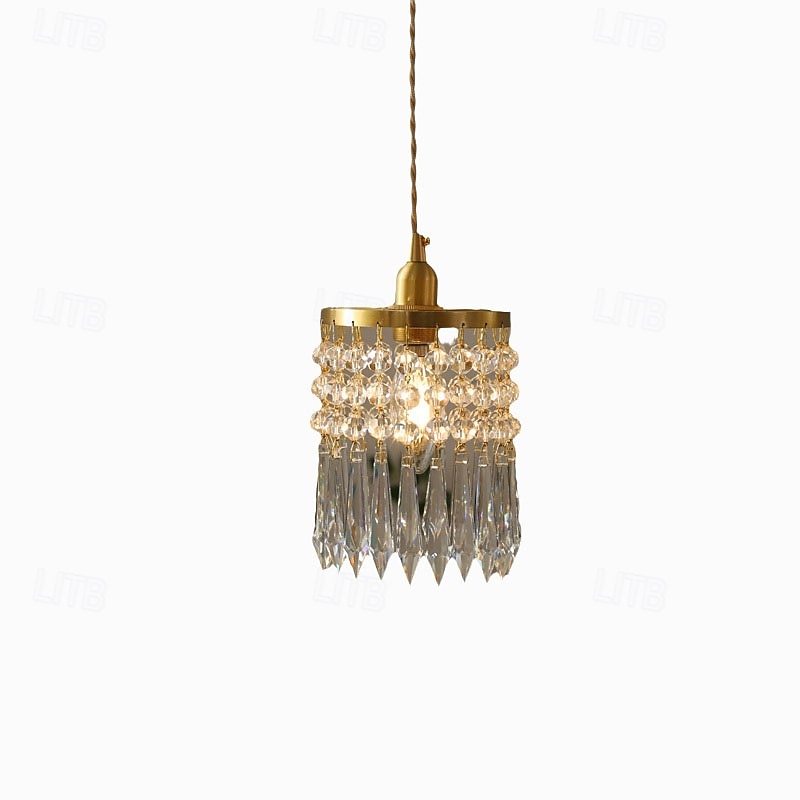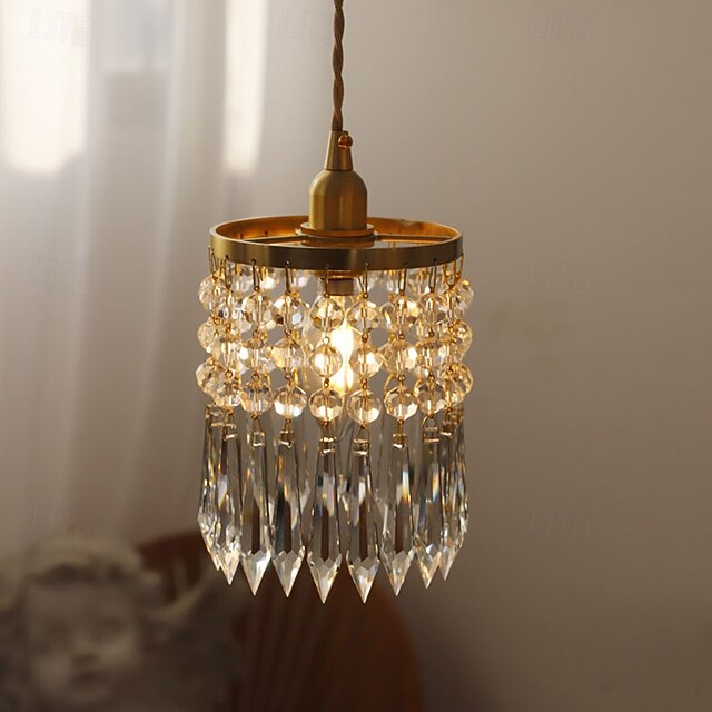 HOT ! French Crystal Copper Small Chandelier, Modern 1 Light LED Pendant, 20cm Height, Warm White Light, E26 E27, Adjustable Chain