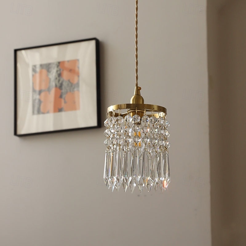 French Crystal Copper Small Chandelier, Modern 1 Light LED Pendant, 20cm Height, Warm White Light, E26 E27, Adjustable Chain 8