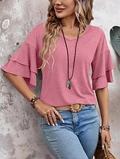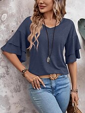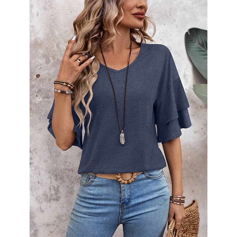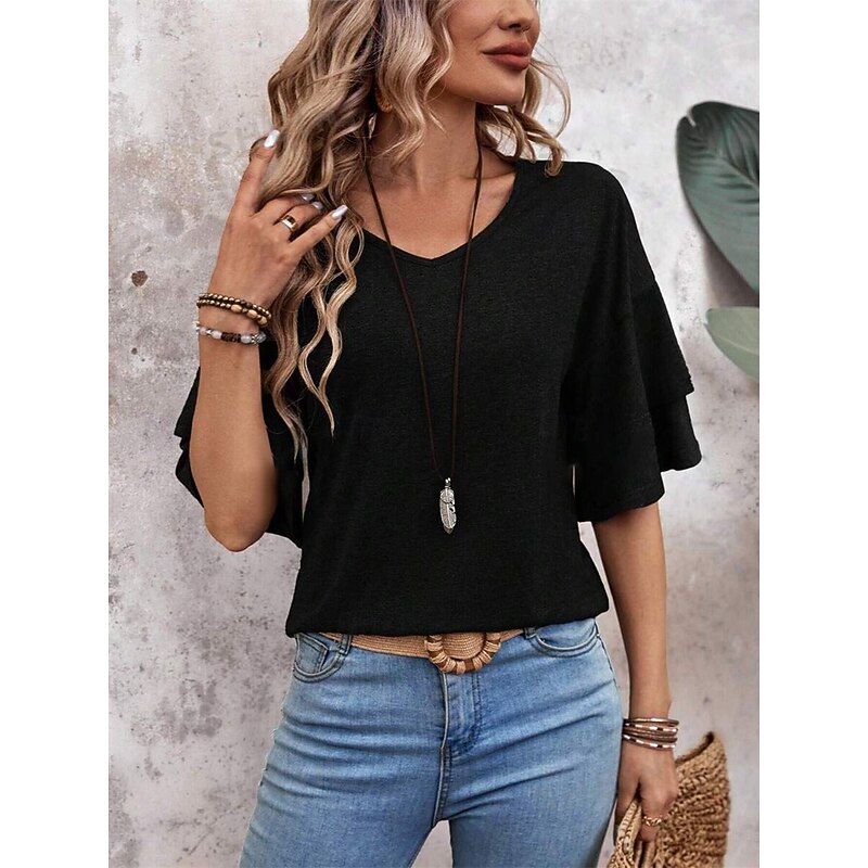 More information about Women's T Shirt Plain Fashion Modern Casual Half Sleeve V Neck Regular Tops Daily Weekend Black White Pink Blue Summer Spring