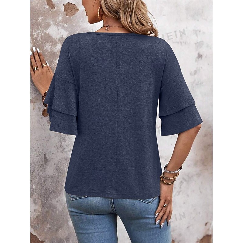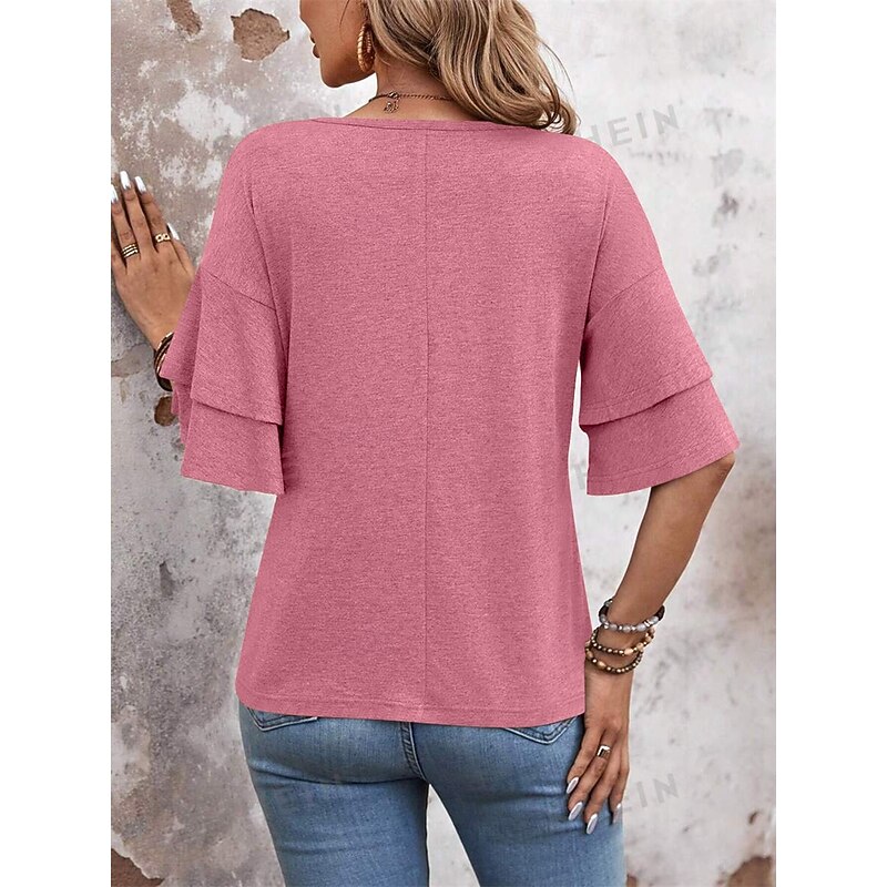 HOT ! Women's T Shirt Plain Fashion Modern Casual Half Sleeve V Neck Regular Tops Daily Weekend Black White Pink Blue Summer Spring