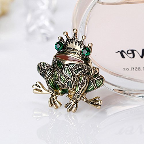 Vintage Big Metal Rhinestone Frog Brooch Enamel Green Crown Frog Brooch Pin Jewelry 5