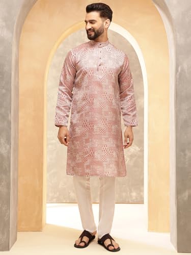 HOT ! Sojanya (Since 1958 Men'S Jacquard Silk Woven Design Kurta With White Pyjama