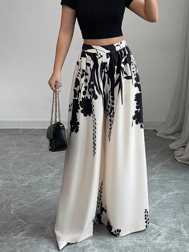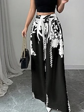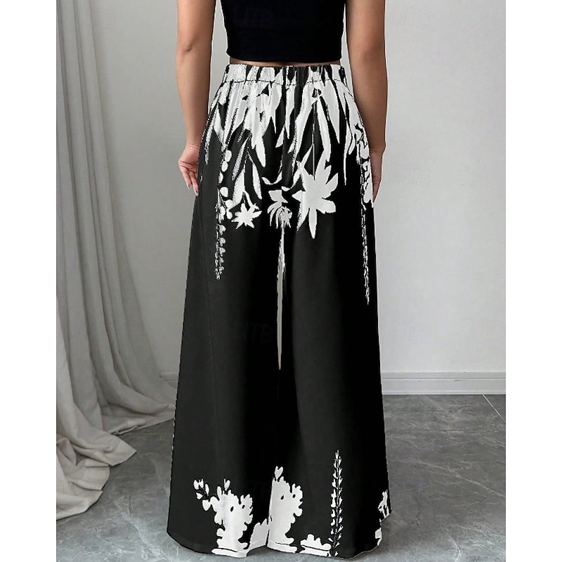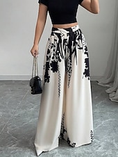 More information about Women's Wide Leg Slacks Streetwear Casual Full Length Natural Flower Elastic Waist Printing Comfy Outdoor Comfortable Holiday Weekend Black White Fall Regular Fit