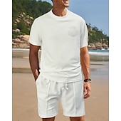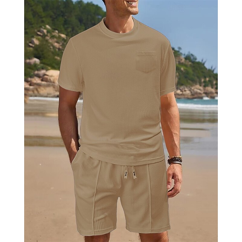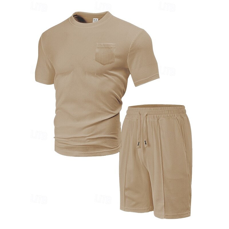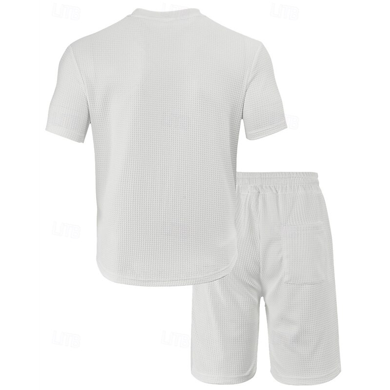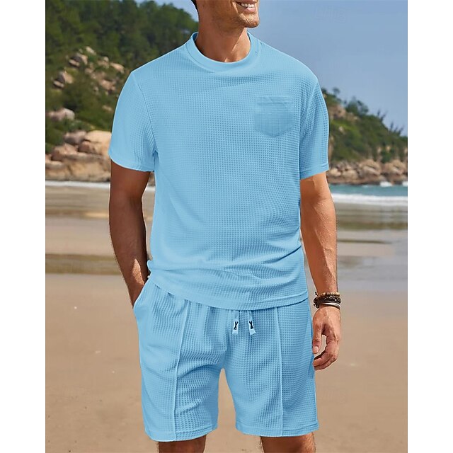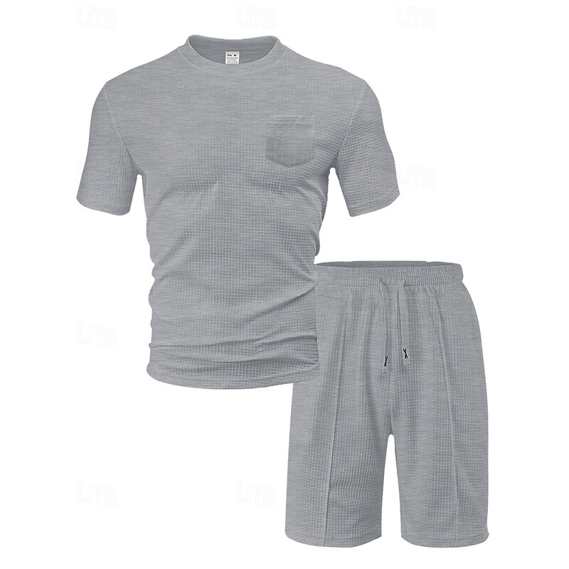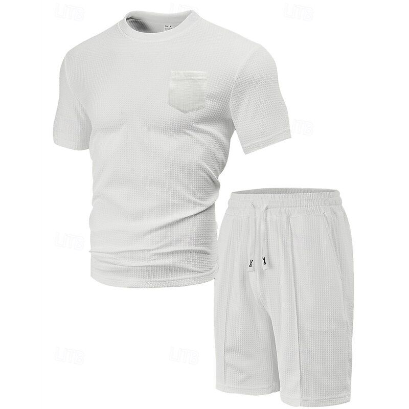 This Men's Waffle Shirt T-shirt Suits 2 Pieces Outfits Tee & Shorts Short Sleeve Crew Neck Summer Plain Fashion Casual Pocket 2 Piece Vacation Daily Wear Going out Black White Wine Top Tee for Men combines elegant design with practical functionality. Every detail has been carefully considered to ensure you get the finest possible experience. The finest construction means this product will serve you well for years to come.