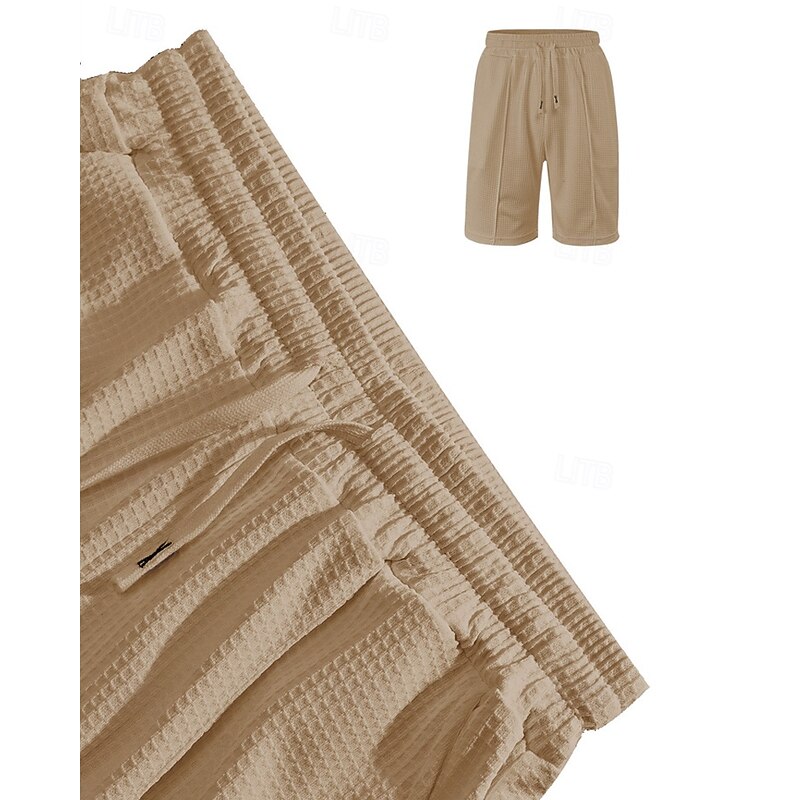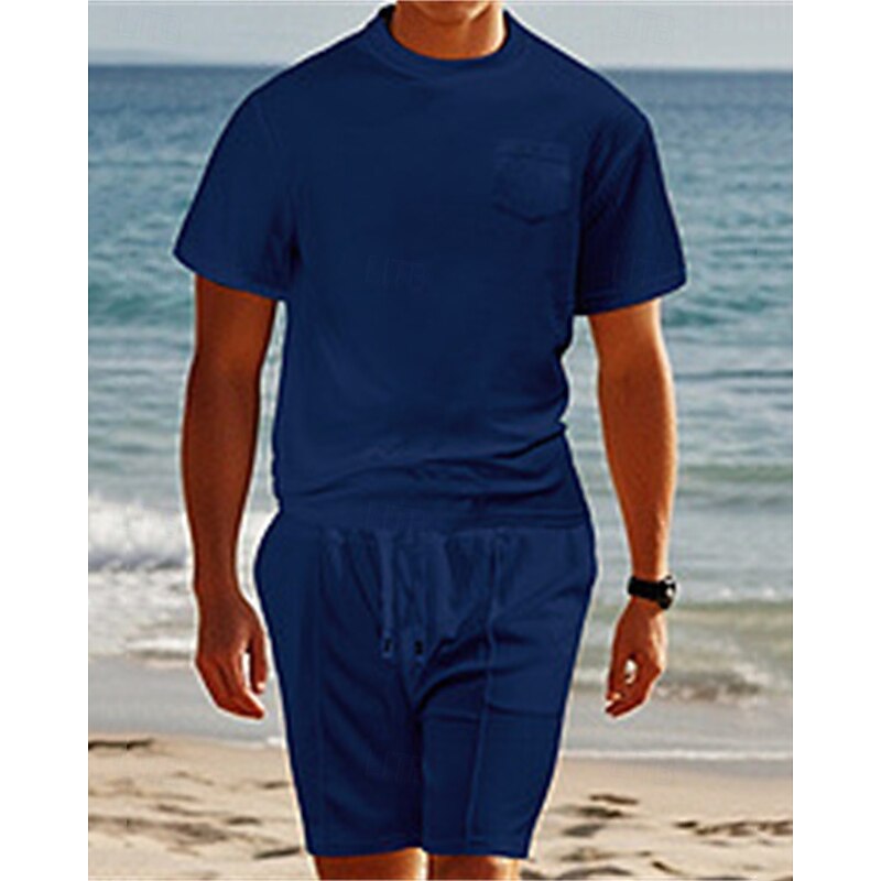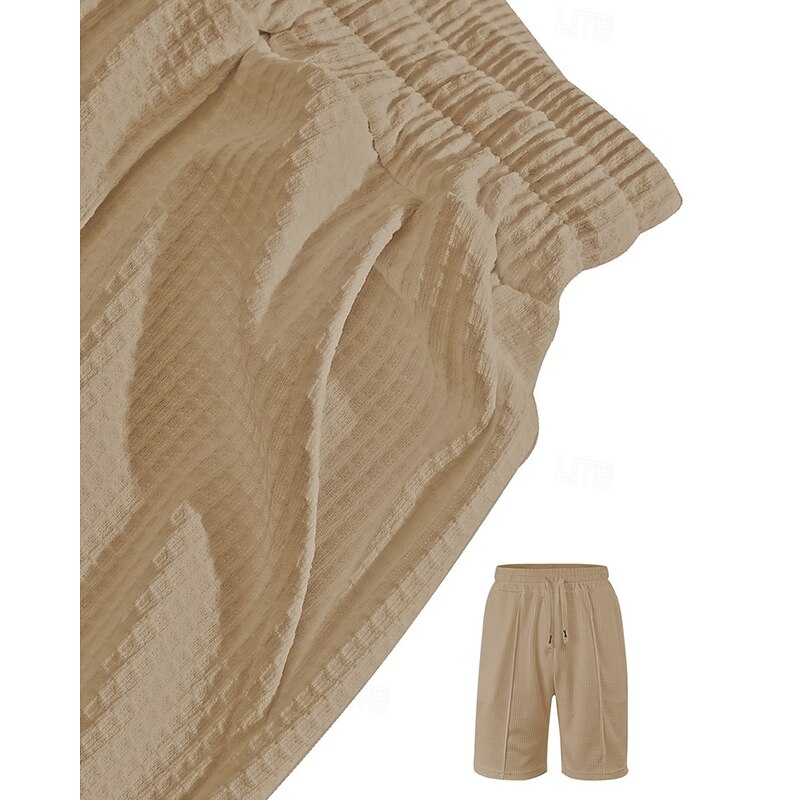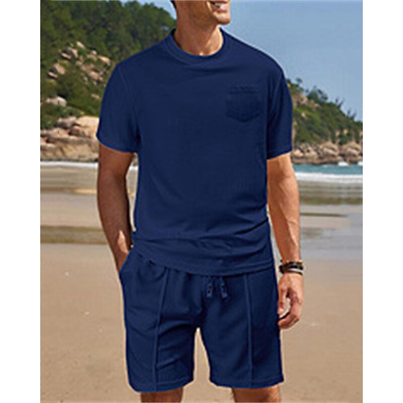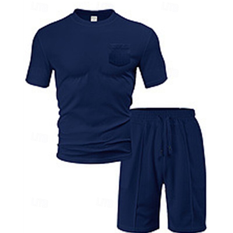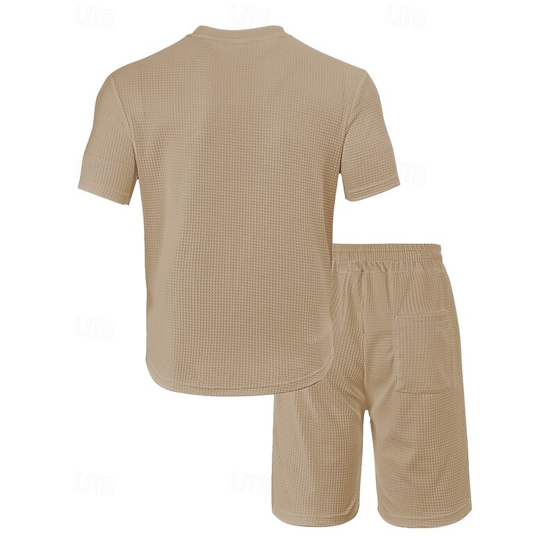 This Men's Waffle Shirt T-shirt Suits 2 Pieces Outfits Tee & Shorts Short Sleeve Crew Neck Summer Plain Fashion Casual Pocket 2 Piece Vacation Daily Wear Going out Black White Wine Top Tee for Men combines elegant design with practical functionality. Every detail has been carefully considered to ensure you get the finest possible experience. The finest construction means this product will serve you well for years to come.