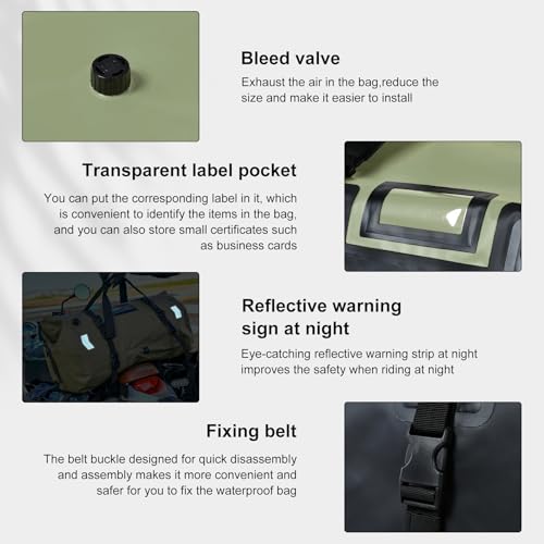 More information about Waterproof Duffel Bag,Roll-Top Heavy Duty Dry Duffle Bag,Motorcycle Dry Bag,with Quick-fixed Straps,with Large Storage Space, Perfect for Traveling, Camping, Kayaking, Fishing & Canoeing (green, 66L)