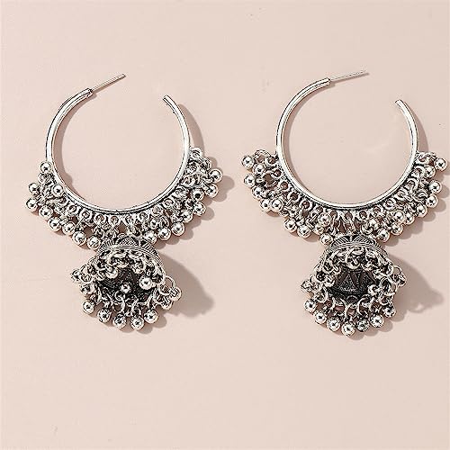 HOT ! Dangle Retro Indian Jhumki Bell Huggie Hoop Statement Earrings Bollywood Oxidized Traditional Jhumka Style Drop Big Open Hoops Earring Boho Jewelry Gift for Women Bff