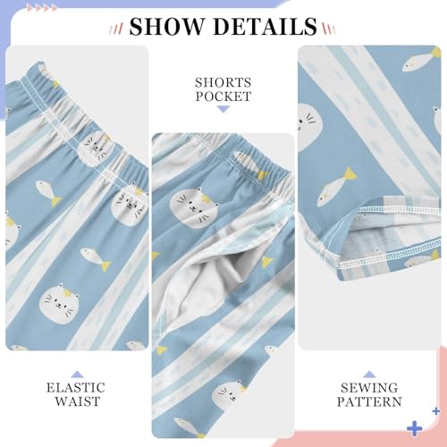 Boys' Pants Cute Cat and Fish Blue Stripe Long Bottoms Jogger Pants Elastic Waist Trousers with Pockets S-XL 7