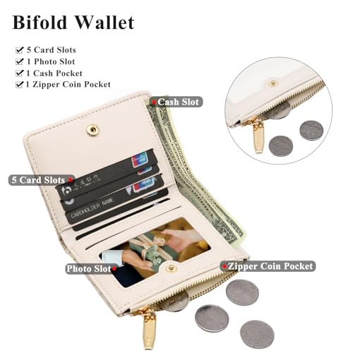 LJCZKA Women Wallets Card Holder, Small Bifold RFID Blocking Purse, Cute Short Pocket Wallet for Women, Girls, Ladies (White) 5