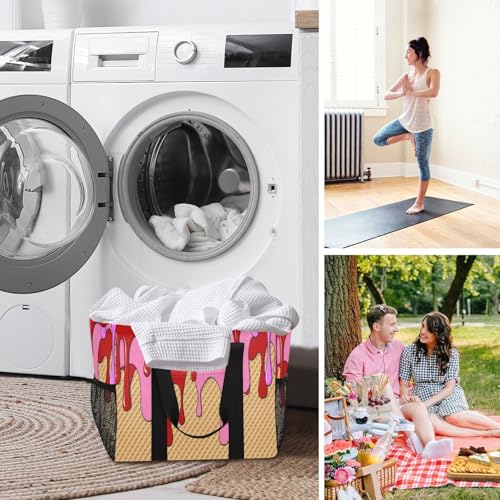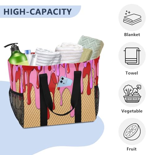 Colorful Dripping Candy Reusable Grocery Bags Large Tote Bag Waterproof Canvas Organizer for Beach Picnic Laundry Travel 4